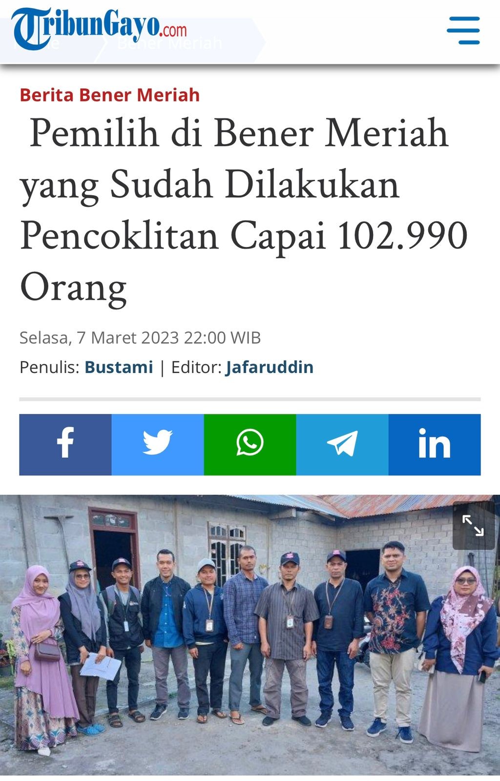 Redelong : Komisi Independen Pemilihan (KIP) Kabupaten Bener Meriah menggelar Sosialisasi PKPU nomor 6 tahun 2023 tentang daerah pemilihan dan alokasi kursi anggota dewan perwakilan rakyat, dewan perwakilan daerah rakyat provinsi, dan dewan perwakilan rakyat daerah kabupaten/kota dalam pemilihan umum tahun 2024.