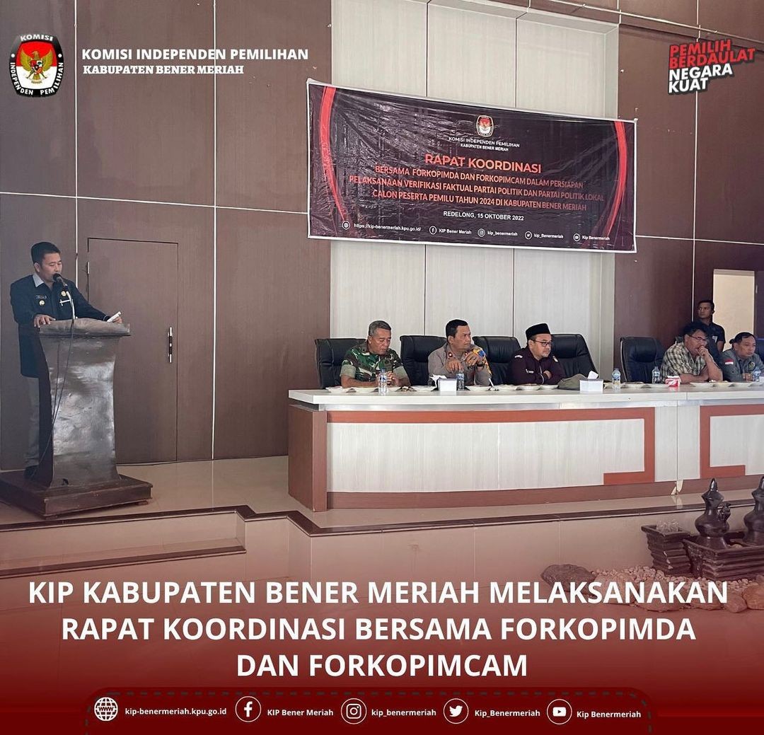 Hai#TemanPemilih KIP Kabupaten Bener Meriah Melaksanakan Koordinasi Bersama Forkopimda dan Forkopimcam, Sabtu (15/10/22).