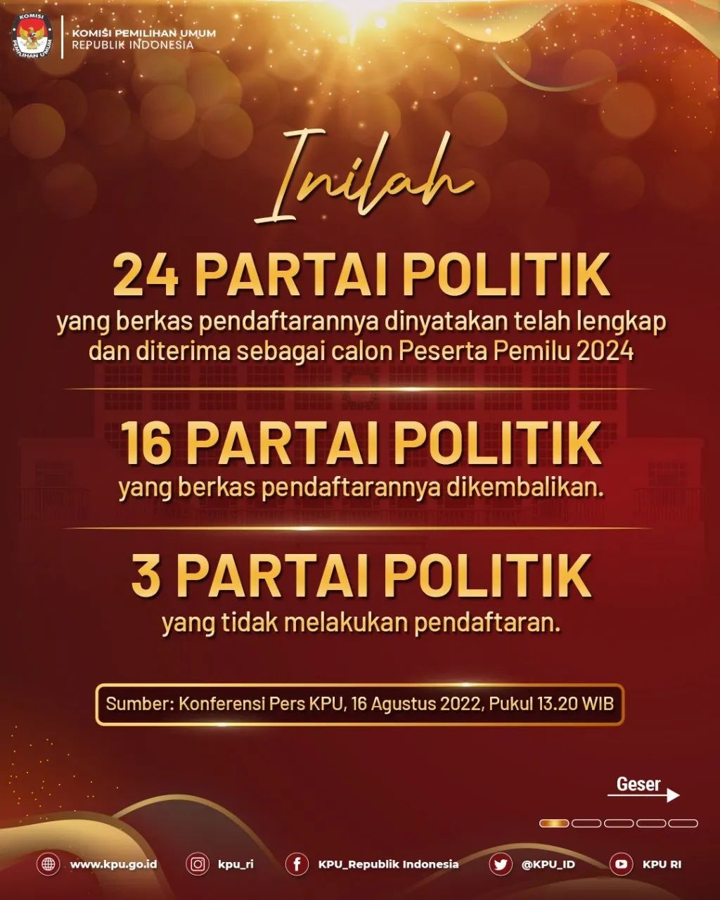 Berdasarkan Undang-undang Nomor 7 Tahun 2017 tentang Pemilu, partai politik bisa menjadi peserta pemilu jika memenuhi sejumlah persyaratan, di antaranya mencakup jumlah kader.