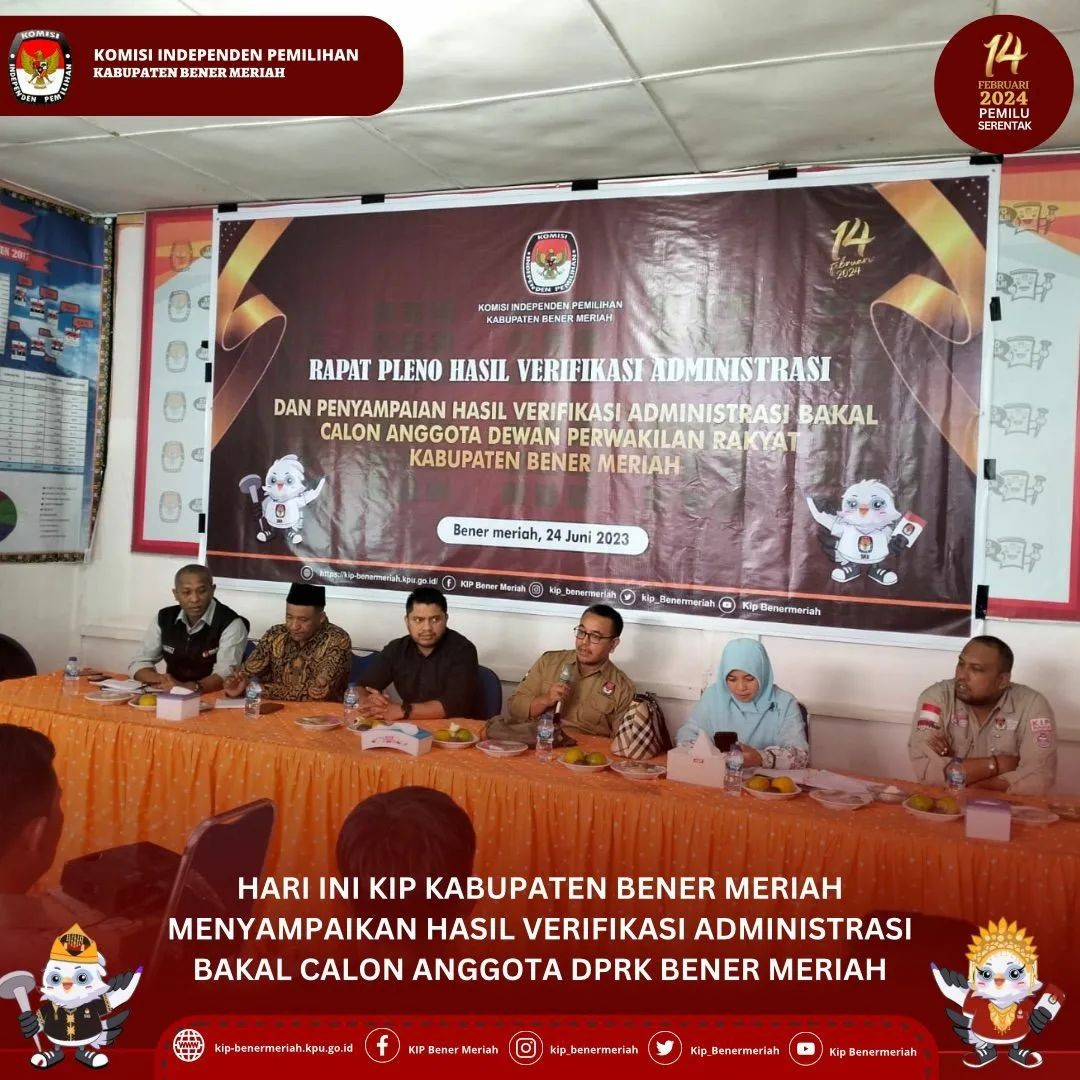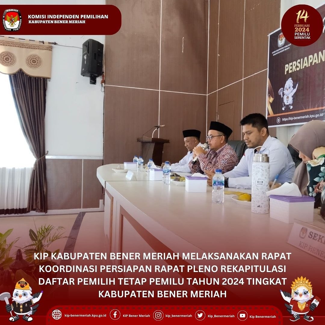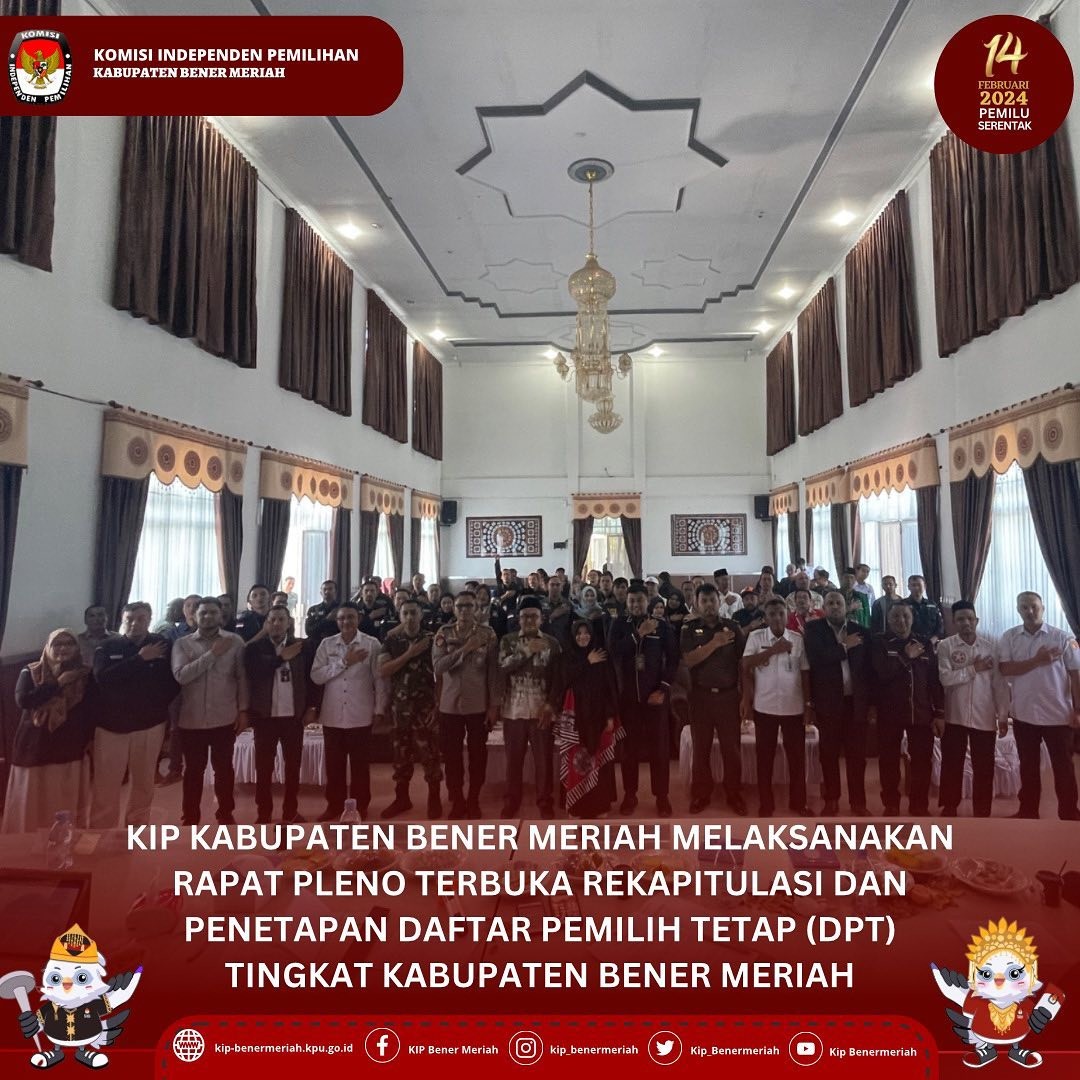 Hai#TemanPemilih Hari ini KIP Kabupaten Bener Meriah Melaksanakan Rapat Pleno Terbuka Rekapitulasi Dan Penetapan Daftar Pemilih Tetap (DPT) Tingkat Kabupaten Bener Meriah, Rabu, (21/6/23).